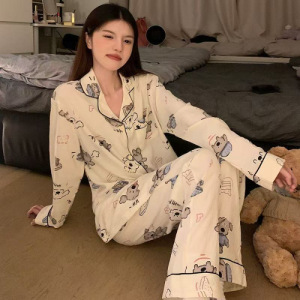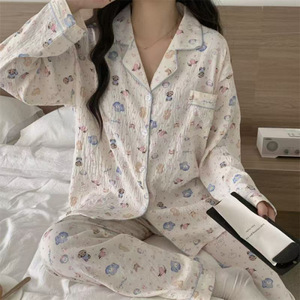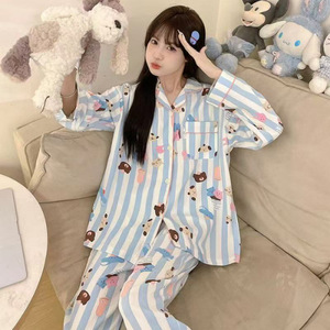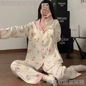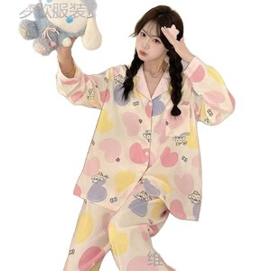 工厂直销跨境云朵棉长袖睡衣女士春秋季长袖长裤韩版甜美家居服套