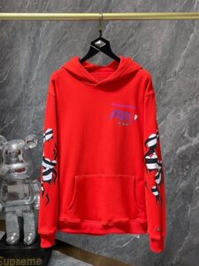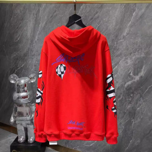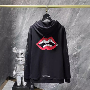 跨境新款高版本CH十字黑色字母克罗伈马蹄红嘴涂鸦火焰印花连帽衫