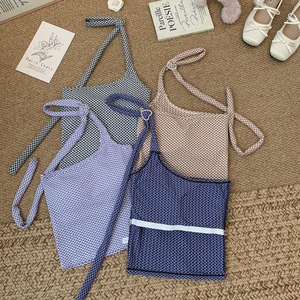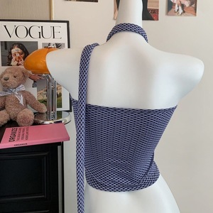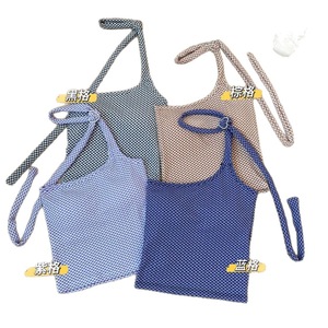 66003#甜辣妹格纹挂脖吊带背心女带胸垫时髦洋气外穿抹胸露背上衣