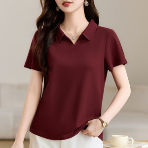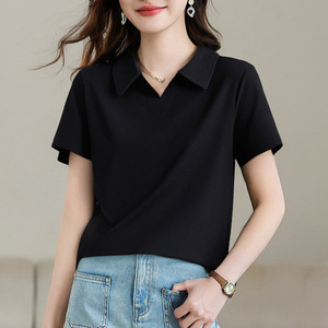 ポロカラー半袖Tシャツレディース2025年夏新作人気右肩無地半袖おしゃれ年齢軽減着痩せトップス