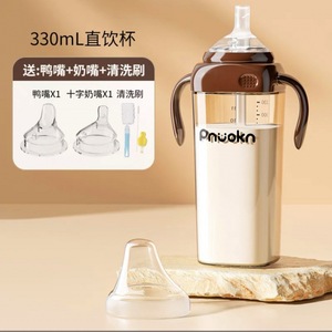 ストロー付き大型ベビーボトル、1ヶ月、1歳以上、こぼれ防止、子供用哺乳瓶、大容量
