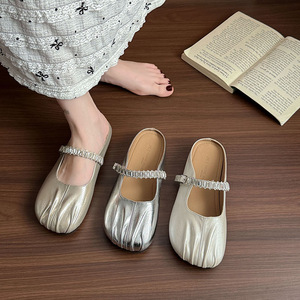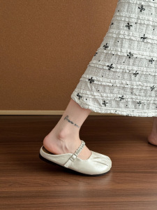 フレンチ太ヒールチェーントゥハーフスリッパ女性の夏アウター 2025 新しい多用途ソフトソールメリージェーンサンダル