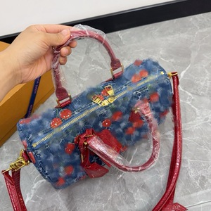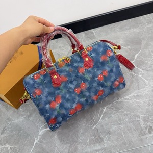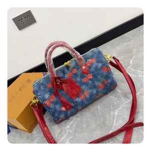 広州クロスボーダー新しい高品質レディースバッグチェリーデニムバッグ枕クロスボディバッグデニムブルーボストンピローバッグ
