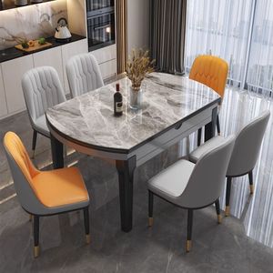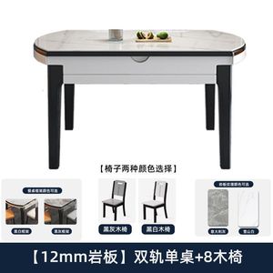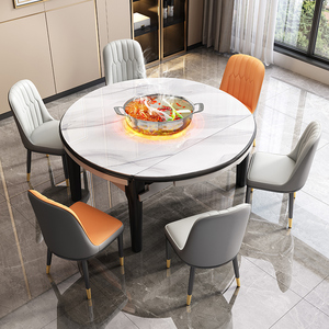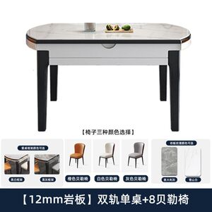 岩板餐桌椅组合可伸缩折叠椭圆形带电磁炉餐桌小户型家用吃饭桌子