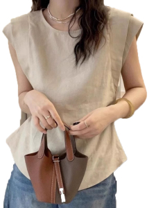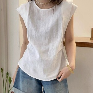 フレンチシックな小さなフライングスリーブコットンとリネンシャツ女性用2025夏大きいサイズファットmmウエスト痩身ラミートップ