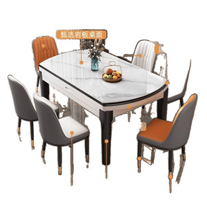 岩板餐桌椅组合小户型家用吃饭桌子椅子大理石实木餐桌可伸缩折叠