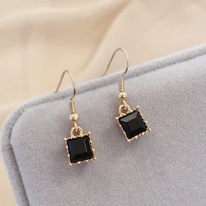 140#ブラッククリスタルペンダントイヤリング - イヤーフック