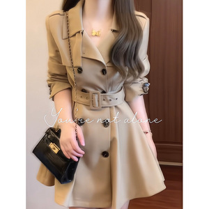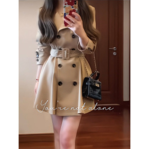 韩版气质名媛小个子通勤西装风衣外套连衣裙款氛围感显瘦修身系带