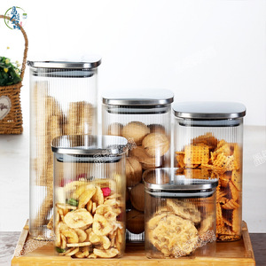 不锈钢盖高硼硅透明带盖茶叶罐玻璃储物罐玻璃罐厨房密封储物罐