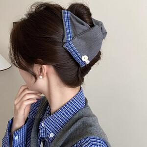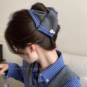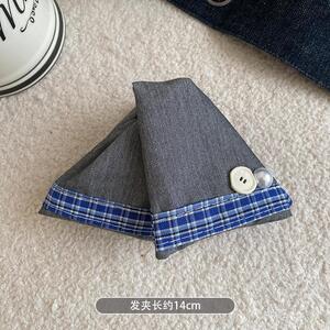田园风粗麻衬衫布发夹女2025新款高端三角后脑勺鲨鱼夹气质抓夹