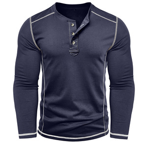 2025 秋冬クロスボーダーメンズ秋冬ヘビーウェイトヘンリーシャツ 3 つボタントップ外国貿易アマゾンメンズ長袖 T シャツ