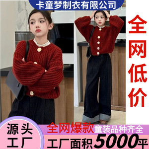 女の子セータージャケット秋冬2025新しい女の子ファッショナブルな赤いニット子供秋カーディガントップ晩秋