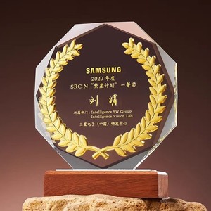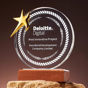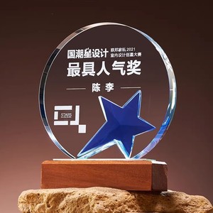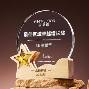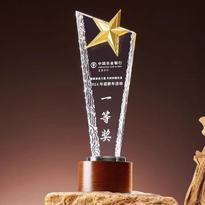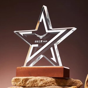 無垢材クリスタルトロフィー、ハイエンドで雰囲気のある五芒星クリエイティブメダル、年次総会賞、優秀な従業員のお土産