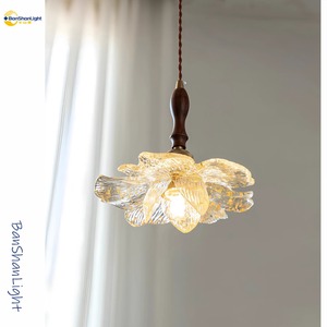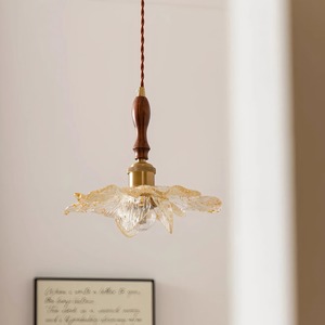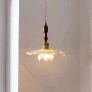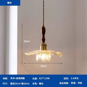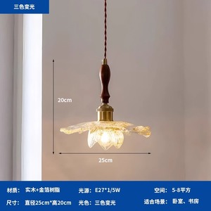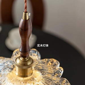 法式中古风卧室床头小吊灯花瓣树脂金箔胡桃色实木吧台餐厅吊灯