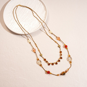 ヨーロッパとアメリカのガラス樹脂セラミック水滴ひょうたん楕円形フラワーネックレスレトロな個性ニッチハイエンドネックレス