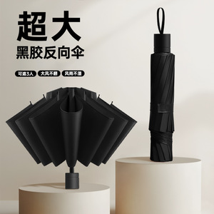 【曜石黑】12骨超大(黑胶晴雨两用)反向商务