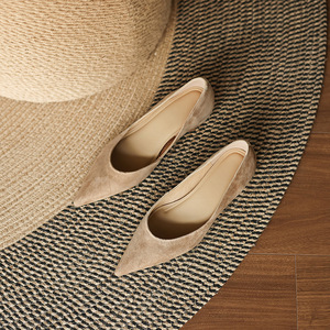 2025新款四季女鞋羊皮尖头内增高一脚蹬气质通勤中跟显瘦浅口单鞋