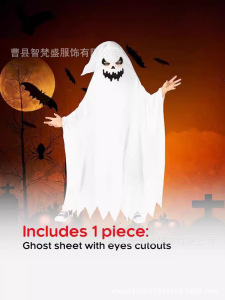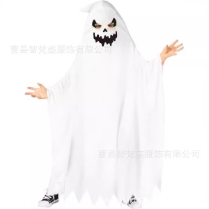 万圣节幽灵儿童服cosplay幽灵白色披风万圣节鬼脸套头披风幽灵服