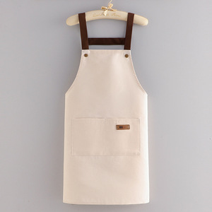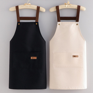 纯色时尚帆布围裙奶茶店餐饮家用厨房做饭透气专用背带耐磨围腰