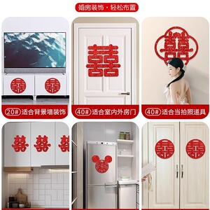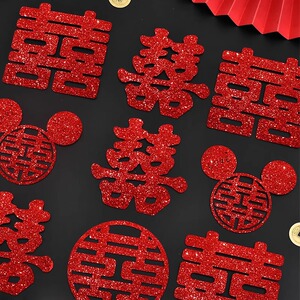 金葱喜字贴手抛喜婚房装饰结婚必备囍字贴门窗卧室婚礼布置喜庆