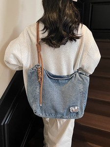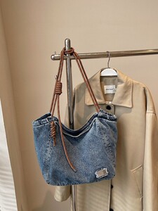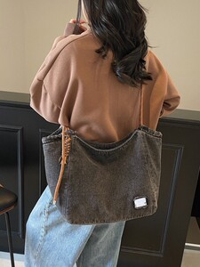 复古韩版休闲简约牛仔包2025新款牛仔布包大容量百搭牛仔帆布包包