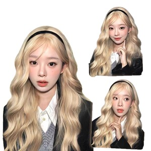 白金色winter同款假发女中分水波纹女团金春夏自然甜酷全头套式