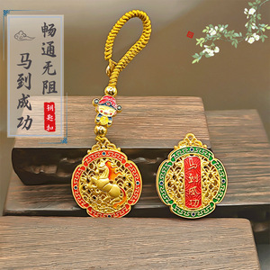 沙金滴油马到成功吊坠财神大吉钥匙扣挂坠配饰手工编织汽车钥匙扣