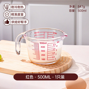 玻璃量杯带刻度有手柄家用厨房食品级耐高温烘焙打蛋杯子计量水杯