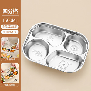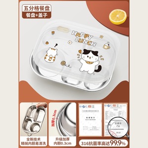316L不锈钢儿童餐盘带盖分格餐盘家用吃饭盘子食堂打饭幼儿园餐具