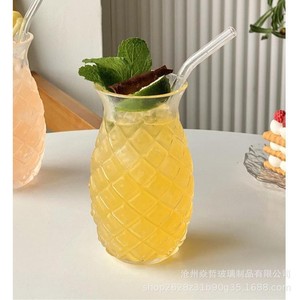 ハンドルレスのクリエイティブなエンボスパイナップルカップ高ホウケイ酸ガラス広口大容量ジュースコーヒーバーバーテンダーグラス