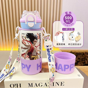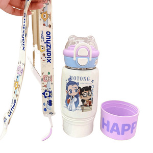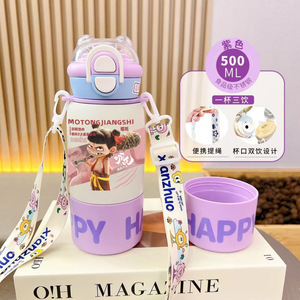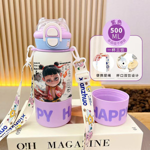 哪吒系列卡通保温杯不锈钢儿童水杯学生便携吸管挂绳大容新款