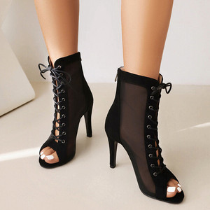 レースアップショートブーツ夏中空フィッシュマウスサンダルレディーススティレットサンダルJAZZジャズダンスハイヒールダンスシューズLサイズ