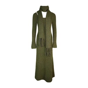 優しい気質とスカーフ付きの女性用ロングニットドレス、秋冬のウエスト痩身セータードレス、コート付き