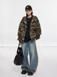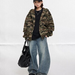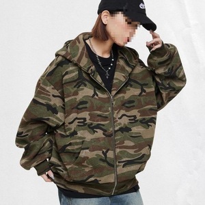 クロスボーダーアメリカンレトロ特殊部隊迷彩ストリートフード付きスウェットシャツジッパーカーディガンジャケット男性と女性のための秋のトレンディな純粋な