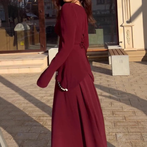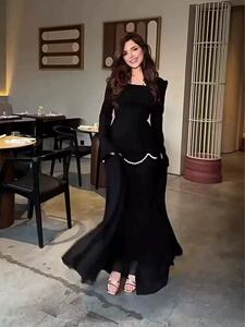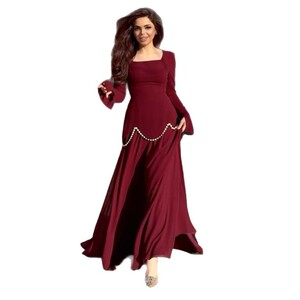 2025 新しいヨーロッパとアメリカのアマゾンクロスボーダー外国貿易婦人服スクエアネック長袖エレガントなパール装飾スプライシングロングスカート