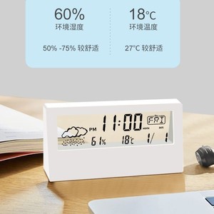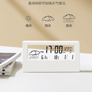 学生向け目覚まし時計、クリエイティブな天気・温度・湿度表示、夜光デスクトップ装飾電子時計