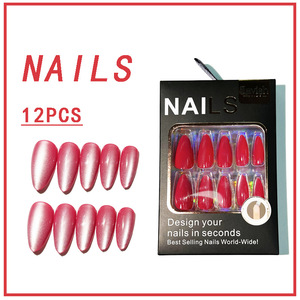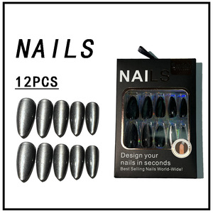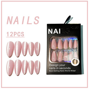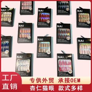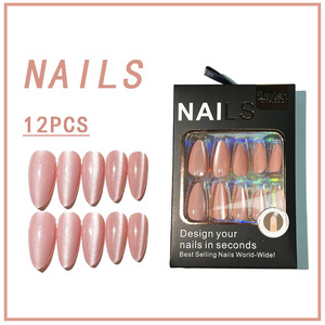 ショートフレンチキャットアイウェアラブルネイルパッチ12ピース完成ネイルパッチアーモンドネイルアートパッチクロスボーダーフェイクネイル