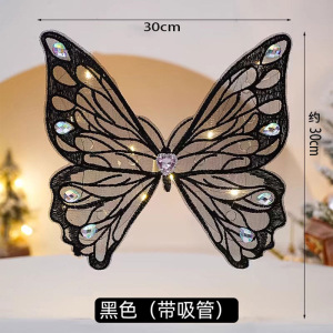 黑色刺绣蝴蝶带灯