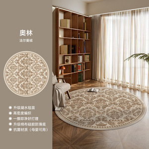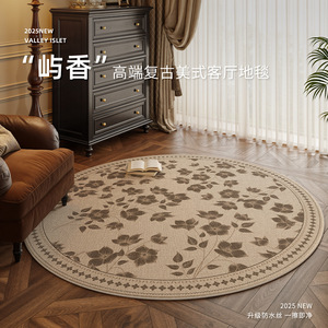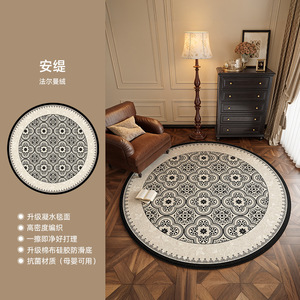 ラウンドカーペットフレンチミッドセンチュリースタイルリビングルームカーペット寝室ベッドサイド書斎ロッキングチェアフロアマットレトロノンスリップフロアマット