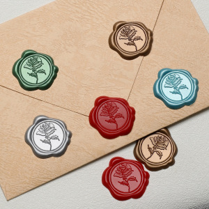 現在の写真 小さなワックスラベル リーフローズ ファイアペイントステッカー ファイアペイントシール 封筒シールステッカー マルチカラー Sサイズ