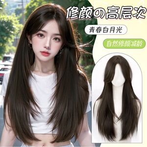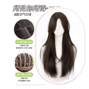 假发女长发全头套高层次锁骨整顶自然蓬松仿真中分八字刘海全头套