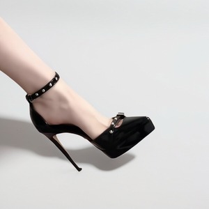 辣妹铆钉一字带防水台高跟鞋2025夏季新款欧美尖头高跟凉鞋