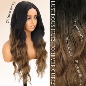 越境新製品ウィッグ Amazon ベストセラー スモール T 字型フロントレース ブラウン染め ミドル分け ロングカーリーヘア グルーレスヘッドギア
