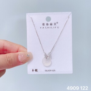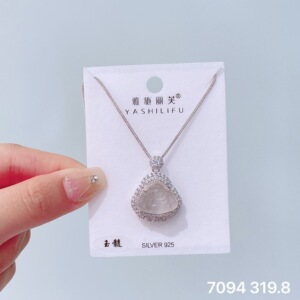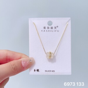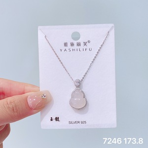 Yashilifu s925 スターリングシルバーライト高級ハイエンドホワイトカルセドニーペンダントネックレス新しい中国風のファッションチャイナドレスアクセサリー女性のための