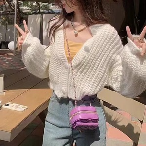 ルーズセータージャケット婦人服 2025 新しいショートレイジースタイルレトロヘビーニットカーディガントップ秋と冬