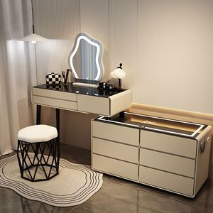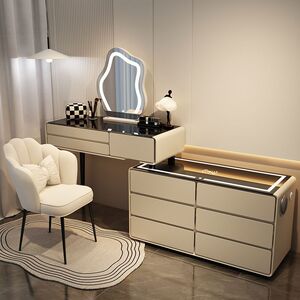 寝室のわびさびクリームスタイル無垢材ドレッサーチェスト一体型モダンシンプルな小さなアパートの化粧台デスク