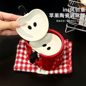 クリエイティブなアップルディップソースプレート、家庭用セラミックキッチン調味料プレート、高価値の小さなディッシュプレート、醤油と酢のディップソースプレート