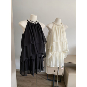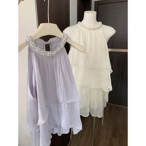 夏の純粋な欲望のデザイントップビーズホルターネック痩身多用途トップスカートパンツ無地スーツ