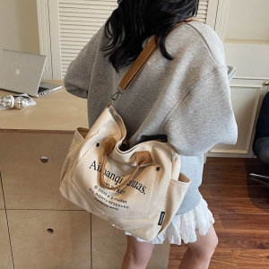 韩版帆布包包女2025新款潮单肩腋下包大容量手提购物袋通勤托特包