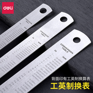 得力钢直尺不锈钢铁尺测量工具15cm/20cm/30cm/50cm文具测量绘图